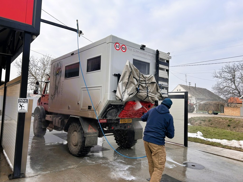 When we walked back to BigMog we realised he was badly in need of a wash – the winter roads were doing him no good at all