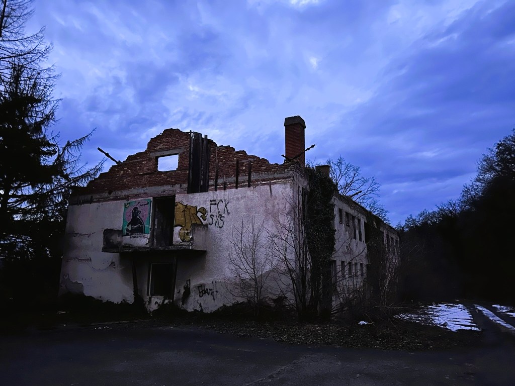 In the evening we drove to an abandoned hotel for the night. The track up to it was very overgrown and BigMog has a few new scratches, but when we got to the top it was perfect – even if the building itself looked a little ghostly in the fading light