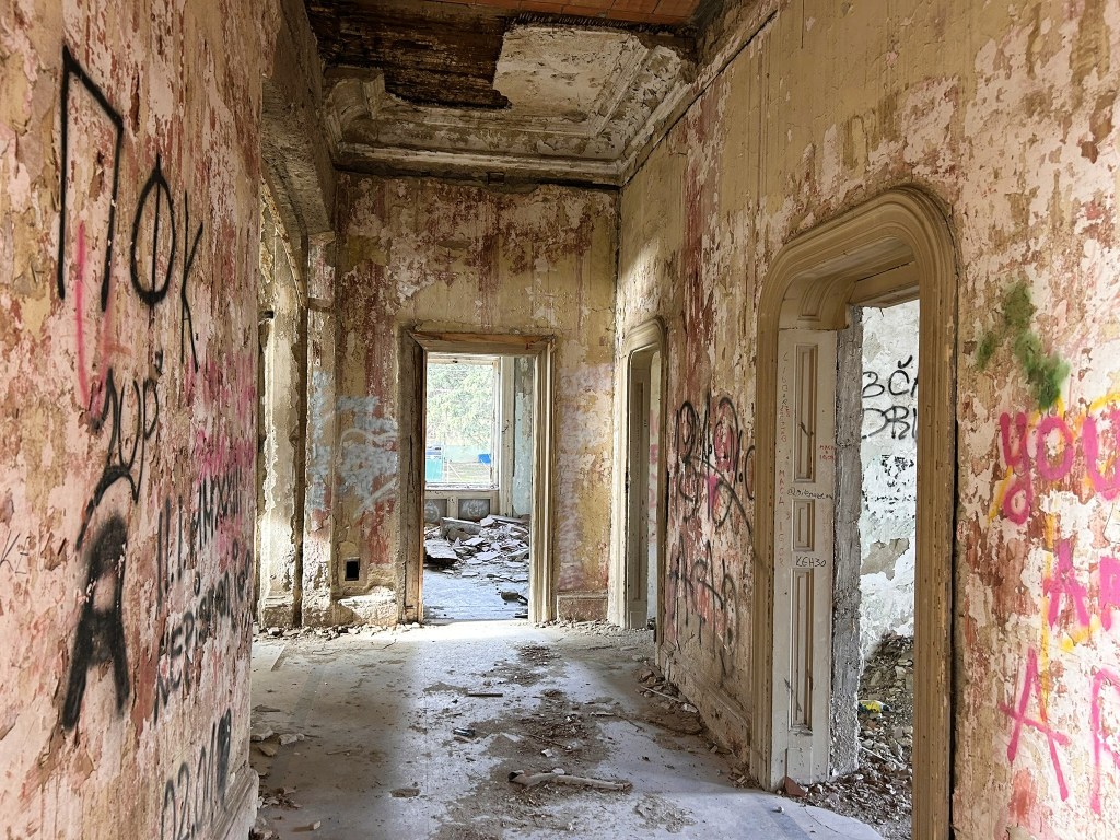 It was built in 1899 by the Spitzer family, wealthy Ashkenazi Jewish landowners. They fled during the second world war after which the building was nationalised and used as a school, library, cultural centre and, more recently, a restaurant. It was even used in the film ‘Kelly’s Heroes’.