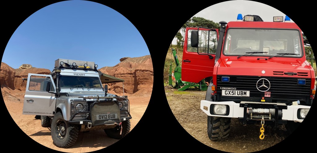 We are Jen, James, Henry the Defender and BigMog the UniMog. We are the Sidetracked team.